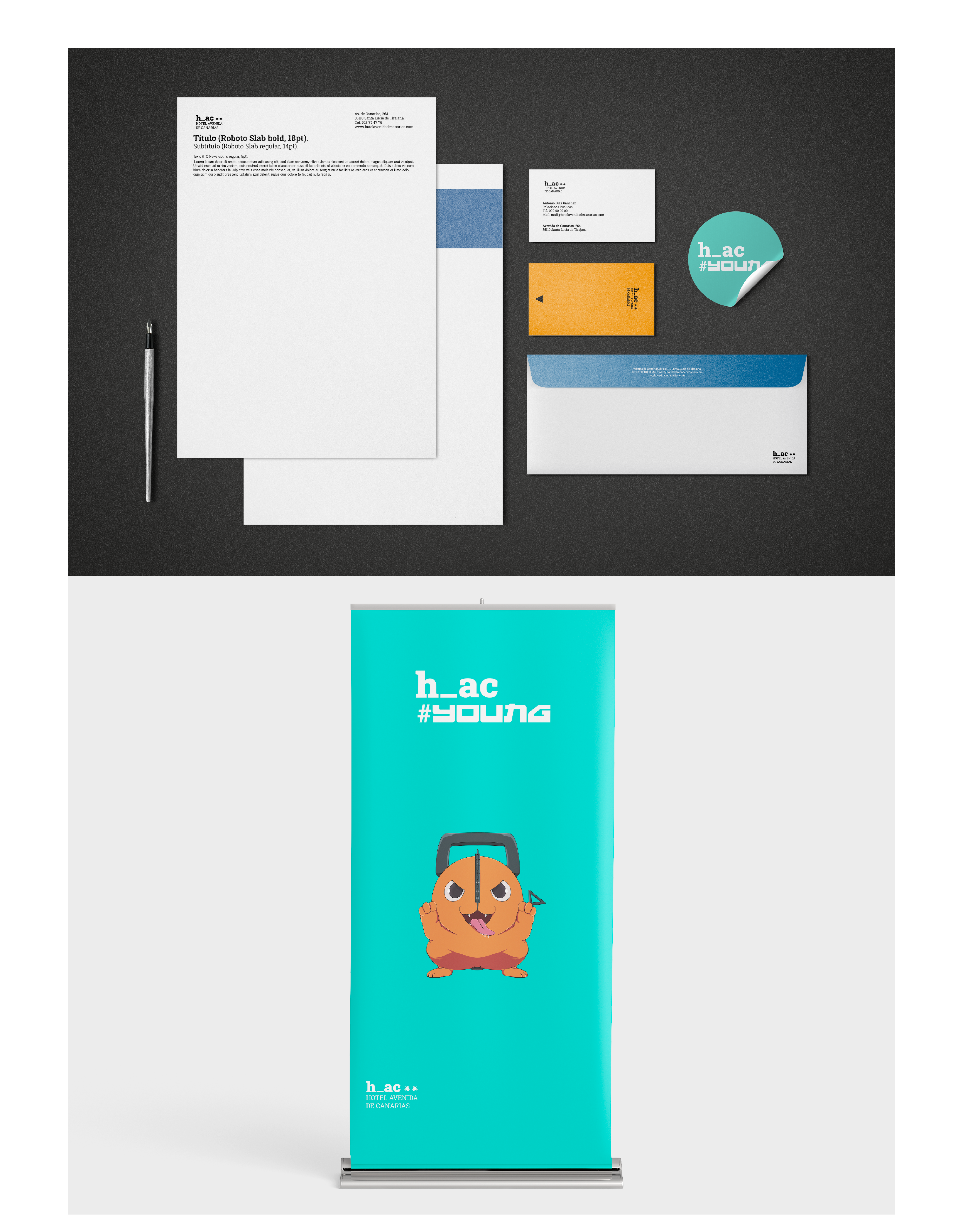 Se busca cercanía y hospitalidad ofreciendo una imagen gráfica y unificada dentro del entorno hotelero en las unidades de negocio como pueden ser la cafetería, el restaurante y los eventos HAC Young que se celebran en el recinto.